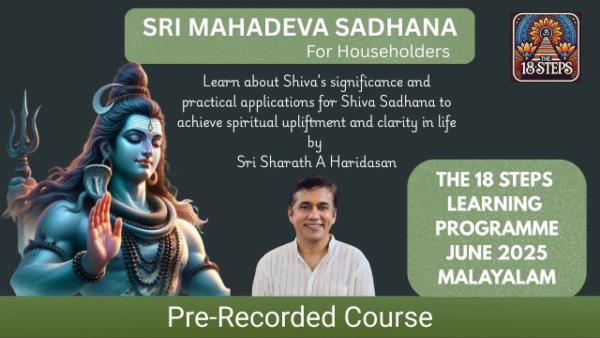 This course is a practical and heartfelt introduction to the sacred path of Shiva Sadhana, specially designed for householders (grihasthas) who seek spiritual evolution while managing the demands of family and work life. Taught in Malayalam by Sharath A Haridasan, the course offers simple yet powerful sadhanas rooted in the Vedic and Agamic traditions of Mahadeva, the Lord of Yogis.
